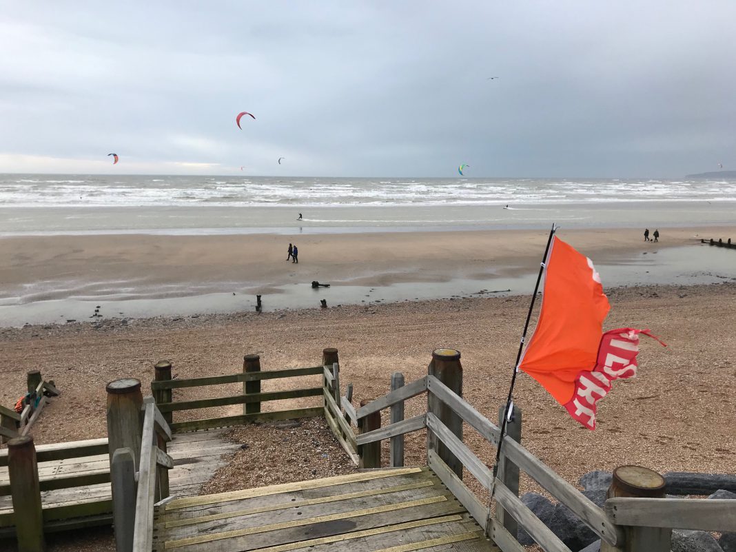 The activity in the carpark should have given me a clue, lots of VW and other vans, estate cars and SUVs with roof bars, bike racks, trailers and various 4×4’s. There were paddle boards, surf boards, wet suits, sails and kites of all known colours and sizes, a veritable rainbow of activity all headed for the waves which were already crashing onto the shoreline. Perfect weather for all those intrepid sportsmen and women having the time of their lives.