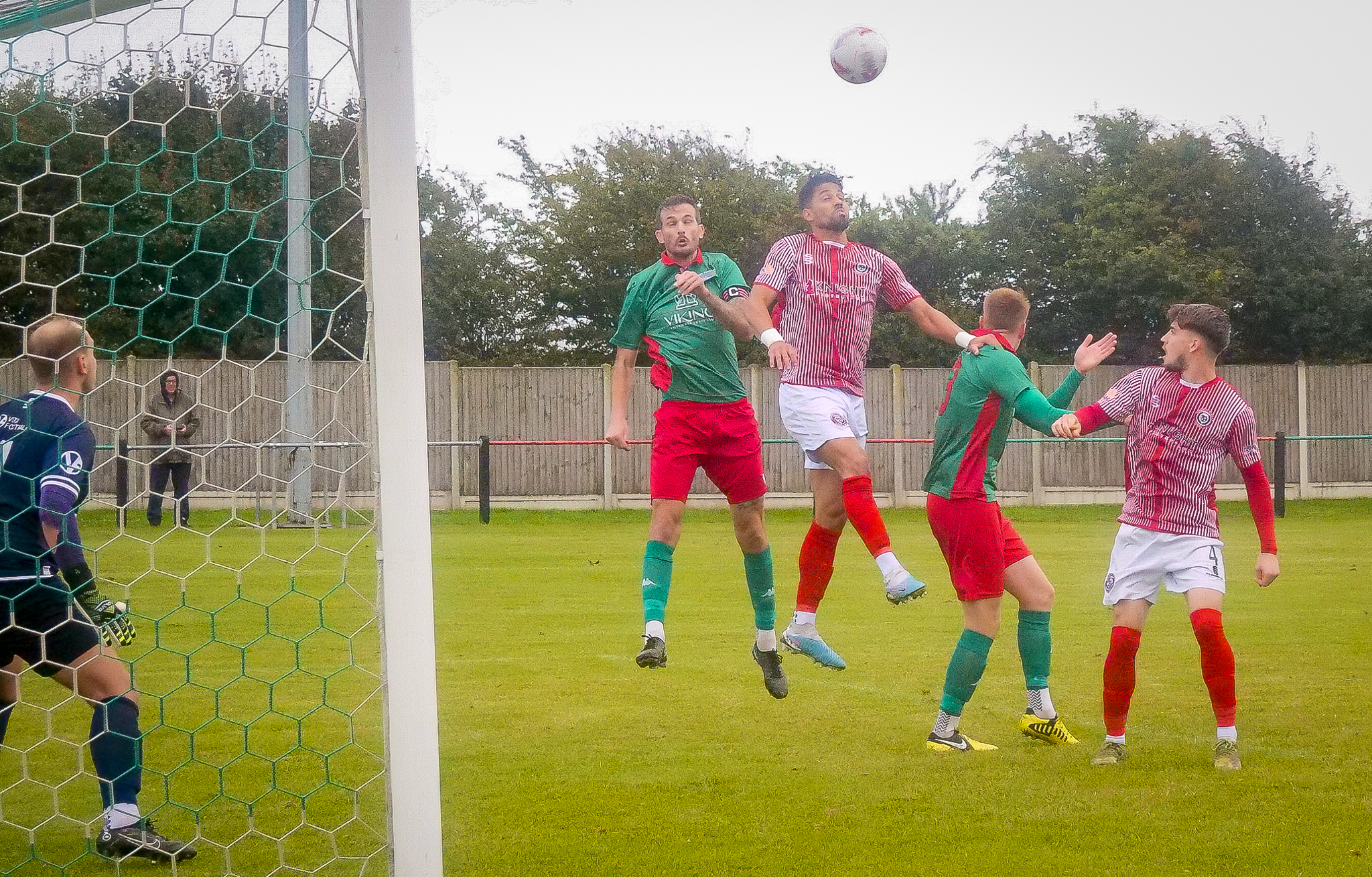 In this tightly contested extra-preliminary FA Cup match Lydd created chances with Troy Howard and Kenny Pogue combining well to threaten the Surrey visitors on several occasions. The decisive goal came in the 70th minute when Howard ran onto a pass from last season’s top scorer, Luke Burdon, to slot the ball past Camberley keeper Dawid Gorski.