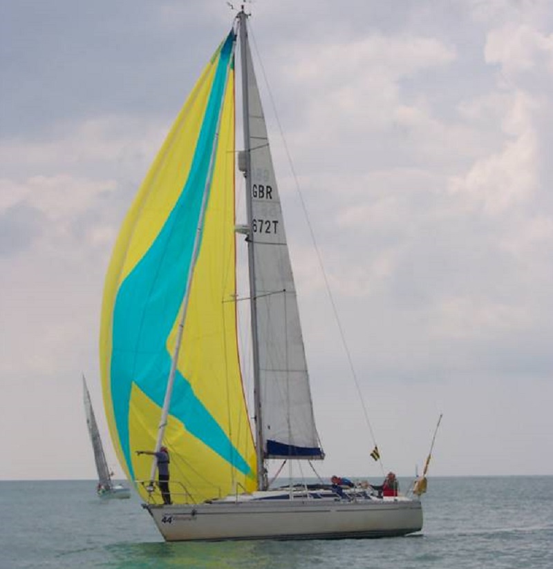 To their surprise and disappointment, this did not happen and they put the flag away in favour of a camera. Ramsgate had clearly led to changes, as two boats were sporting new sails, a laminate genoa in the case of “Limbo Girl” and a spinnaker for “Roxanne”. We also saw the rare sight of “Lady Jane” flying her cruising chute.