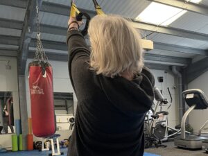 Susy Limbering UpSusy begins her new gym routine on January 30, approved by her GP. She will be doing a personal training programme with Gav for two days a week for five weeks, based on her target health and fitness goals (to be achieved by her 85th birthday in August).
