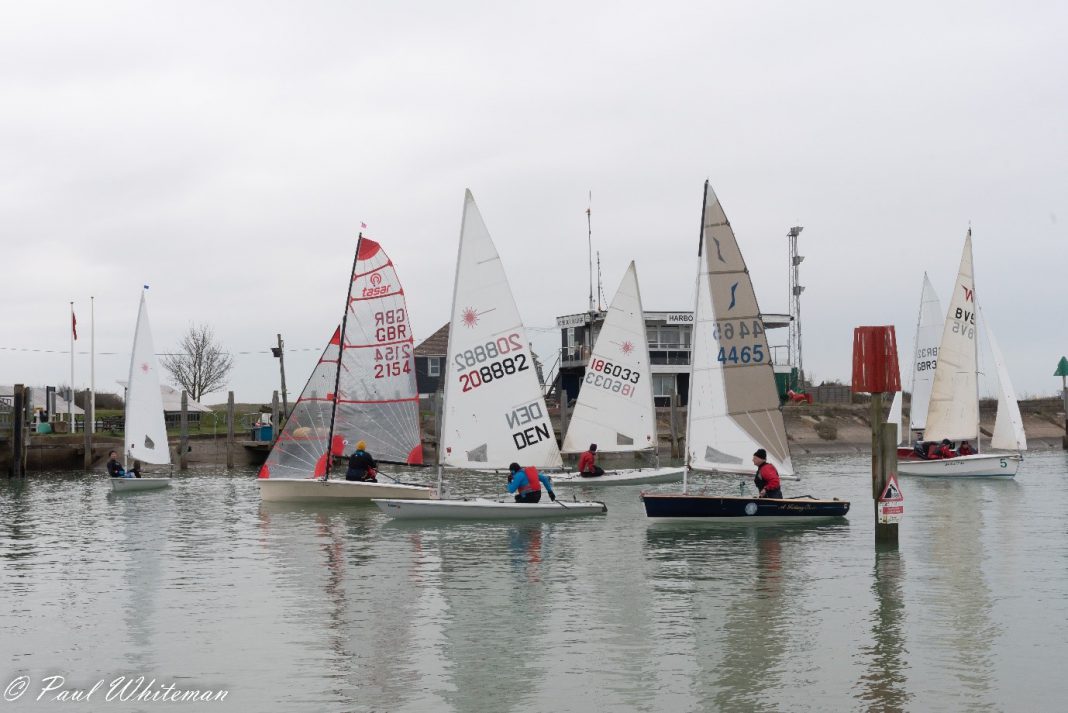 Despite this we had 11 dinghies sailing including three old friends from Hastings and St Leonards Sailing Club. This year the winds were very light and coming from the north; resulting in a few relieved comments as boats were launched. The course saw competitors heading towards Rye up the River Rother before turning around and sailing out to Rye Bay and turning back again. The start line between the club and the Harbour-master’s office was filled with boats as they waited for the off.