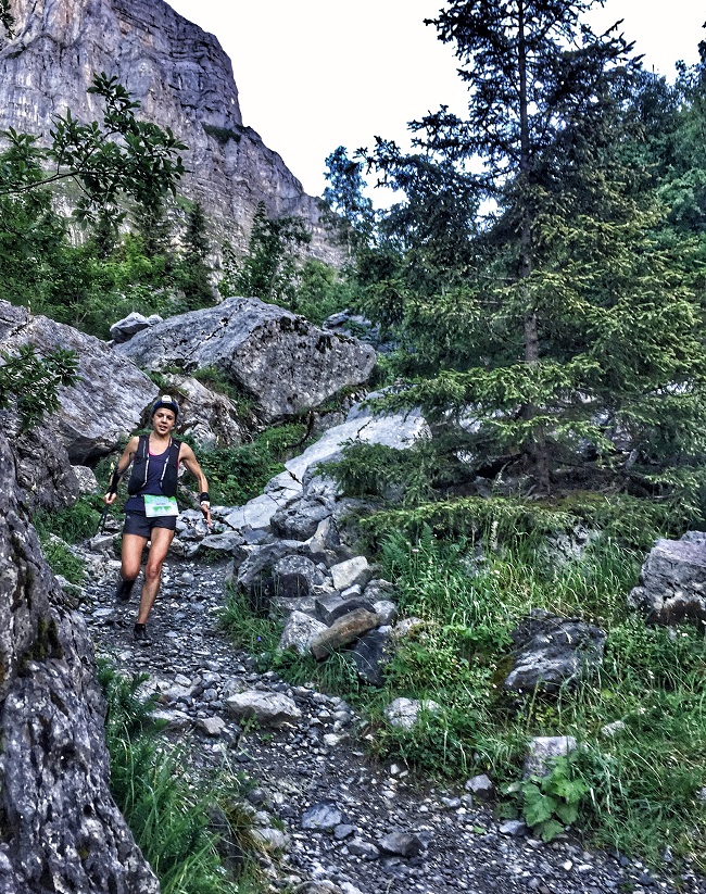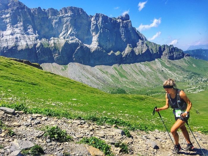 “In terms of training,” she says “although my family and I are based in Pett Level, I spend a lot of time in mountainous regions and have had many opportunities to exercise very well at higher altitudes around the Chamonix Valley area. I have a coach and I mix my training up between short hard training runs and long ‘big days’ at an easier, endurance pace – always off road. I have been racing for the past four years, and over time I think my body has adapted to take on tougher stuff and to keep pushing to the next challenge/high mountain path!”