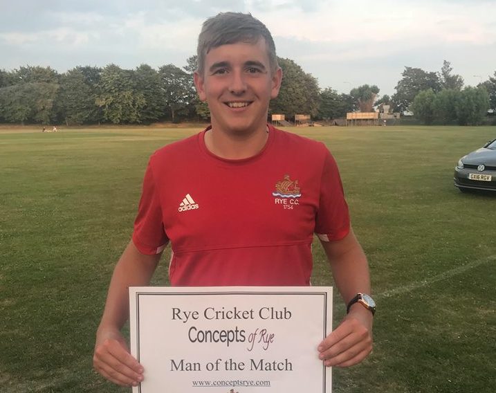 Rye skipper Harry Smeed lost the toss and Rye were asked to bowl. They got off to a great start with Rye Concepts Man of the Match, James Smeed, together with Cleon Reece, ripping through the top four with James Smeed finding the outside edge on numerous occasions.