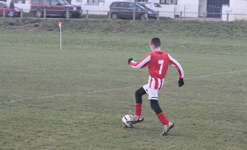 Rye Bay Football Club under 12s hosted Little Common on a wet and windy day last weekend. The game started with both teams being cagey and giving little away, but with the wind behind them it was Rye who after 15 minutes took the lead against the run of play: a smart cross from the right by Spencer Milton found Tom Wilkieson who, with the ball on his favoured left foot, gave the keeper no chance with a powerful shot into the bottom corner.
