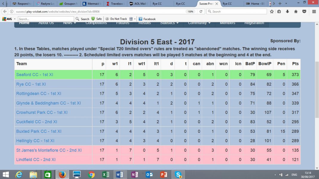 This Saturday, September 2, Seaford play Lindfield 2nds and Rye play Crowhurst Park 1st XI. Rye need to pick up 30 points and cross their fingers.