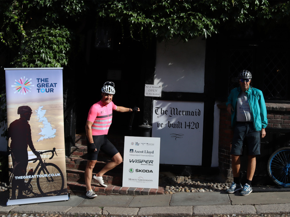 Hugh and Robin’s ride saw them re-start in Rye from outside the famous Mermaid Inn hotel last week for the leg to Broadstairs in Kent and this week saw them heading around the Kent and Essex coasts to East Anglia to complete week one of the Great Tour.
