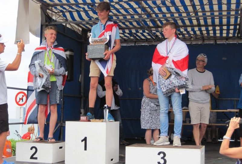 [Editor’s note: 15 year-old Scott has been a member of Rye Harbour Sailing Club since he first learned to sail in the family dinghy at the age of six and began sailing his current Topper (shown in the photo, above left) in 2013 before starting to train with the RYA (Royal Yachting Association – sailing’s governing body) two years ago. He moved up to the National squad this year and is now the UK no.1 in Toppers as well, of course, as World Champion. Next year he will be to old to compete in Toppers, hence his move to a Laser. This is similar style of single-handed boat, but larger than a Topper and is the same class in which Olympian Sir Ben Ainsley won one of his gold medals. So, another Olympian in the making? Well, maybe. We wish him luck]