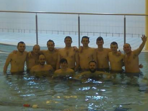 Rye Town Boys doing a bit of extra training in the pool on Wednesday evening.