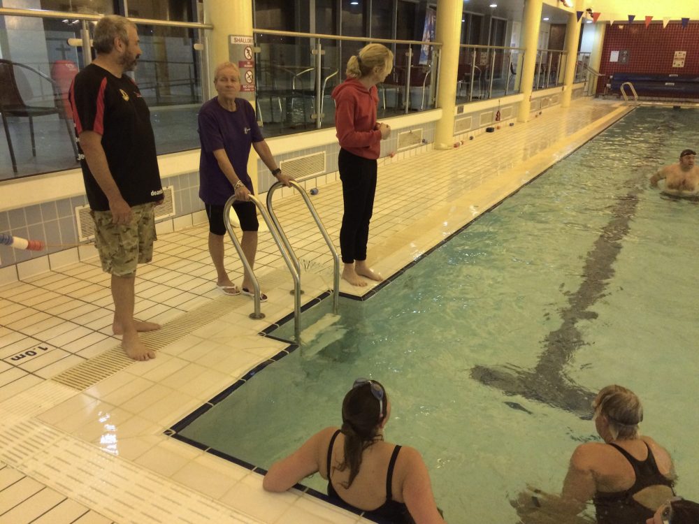 Then it was the turn of the adults. There were five of us – three women and two men – and we had the undivided attention of not just Hazel, but also of Dean Baker, the coach for 1066 Swimming Club and Claire, the swimming instructor from the Sports Centre.