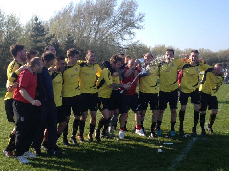 Rye Town’s successful team then celebrated after being presented with the East Sussex Football League Division One trophy.