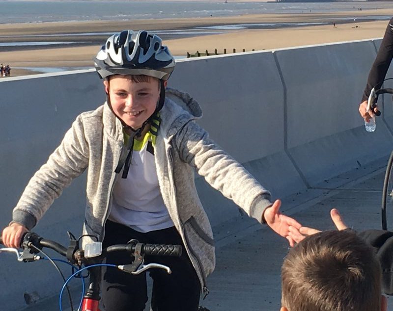 Ben did his triathlon on Sunday November 6. Starting at the pool at Camber Park resorts, he did an 80 metre swim, a 3 km cycle ride travelling through the holiday park and along to the end of the new sea wall at Broomhill Sands, Camber and then a 1km run on the way back along the wall to the finishing line his family had set up for him. His Dad helped plan the route and distances. Ben did it as a competitive triathlon, with no breaks in between disciplines (apart from a brief change from trunks to tracksuit after the swim).
