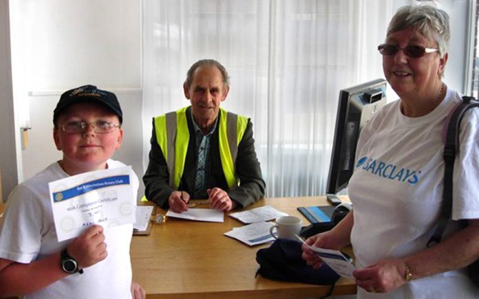 Among the youngest walkers was Axal Kelly, aged 10, who raised £119 in sponsorship. He was accompanied by his grandmother Janet Sherwood. They are pictured receiving their walk completion certificate from Rotarian Richard Popple. Axal commented: “It was good until my leg started aching on that stony path, but I’m definitely doing it again next year.”
