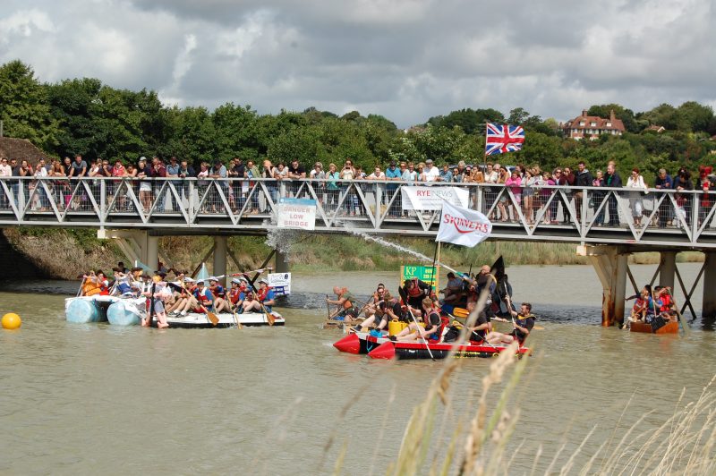 But after a year without a festival (and how can a seafaring town as old as Rye not have a sea-related festival?), new organisers came forward and the Festival of the Sea was born. The main innovation was to once again run a raft race. This has had a long and somewhat chequered history, but its resurgence was generally welcomed and the hundreds of spectators who turned out at 11am to throng the Monkbretton Bridge and the South bank of the river, were not to be disappointed.