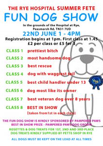 It’s the first fete since June 2016, and promises to be well worth the wait. It will be a fun-filled, action-packed afternoon with plenty to do for children and adults alike. There will be food, live music from The Rye Bay Crew, a gloriously fun dog show with an array of categories to enter, including prettiest bitch and most handsome dog. The finale will be Best in Show sponsored by Pampered Paws in Rye. The winning dog receives a grooming voucher.