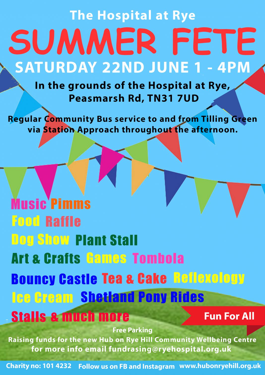 Rye Hospital is holding a summer fete on June 22 to raise money for the Hub on Rye Hill, the new community well-being centre that is currently being built and due to open in December 2019.