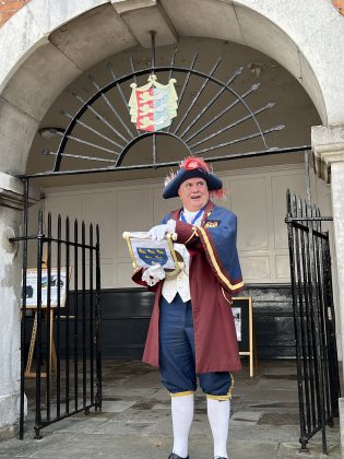 The town crier and those present then gave three cheers, Andi Rivett, the mayor, having sent his apologies because he was involved in a task on the river with the harbour master.