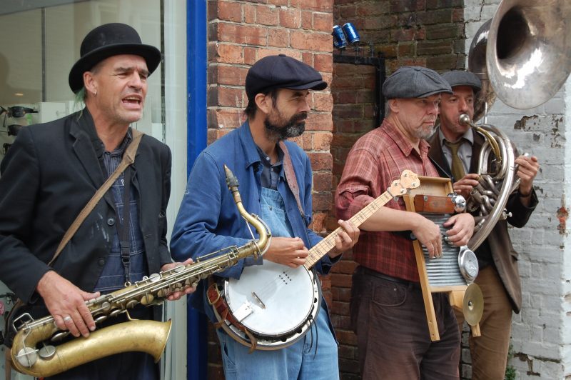 A group of jazz musicians called Swervy World provided lively entertainment in the High Street last Saturday September 8. They were taking a break before their gig that evening at Stone in Oxney.
