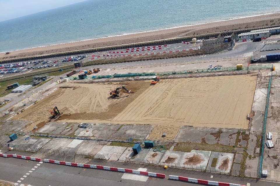The basement was filled to ground level using over 10,500 cubic metres of material, enough to fill four Olympic-sized swimming pools. More than 1,400 lorry deliveries were made over 3.5 months, with materials locally sourced from Lydd Quarry.