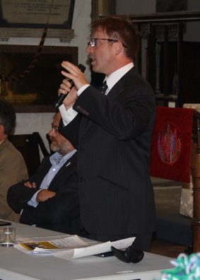 Wilson started to blame the banks and deals with Saudi Arabia but, despite his complaints that he was being censored, was cut short by the chairman who clearly sensed that the audience was getting restless with his single tune. Chowney concentrated on the local effect: 32 PCSOs, he said, had been reduced to five, despite the fact that they are the people who have the confidence of the community and were the front line of local intelligence gathering. Perry said it was a question of resources – currently insufficient – and Phillips went back to the Muslim theme and felt that the innocent Muslims were afraid of their own community. This view got little sympathy from the audience.