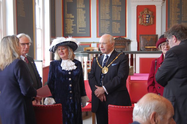 Swearing the oath of office in the traditional form, he undertook to serve the commonalty of Rye without fear or favour. Then came the nomination for deputy mayor. Councillor Michael Boyd proposed Councillor Andy Stuart, who was duly appointed, necessitating another adjournment for robing up, signalled by town sergeant Paul Goring and his fellow mace bearer, David Paine. These were later re-elected in their turn along with the mayor’s chaplain, Revd Paul White and the mayor’s cadets for 2022-2023, Lara Botley and Bradley Williams. All was conducted with the greatest solemnity, relieved by little touches of humour such as the passing of the 1951 new-minted pennies back and forth into the safe-keeping of the new mayor.