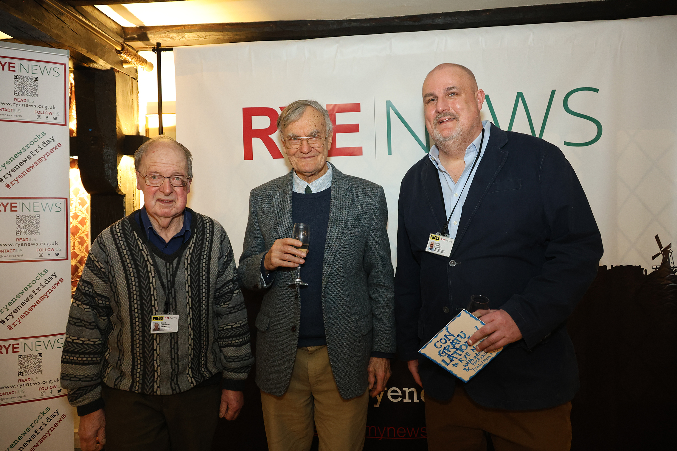 This was echoed by James Stewart in his speech thanking all involved. “The town has big stuff that we can get our teeth into and fantastic people – so interesting – and it is hugely gossipy! Rye News is also pretty unique as not many towns in the UK have a volunteer run local paper.” The paper’s success was, he said, down to all who were at the event, including Kenneth Bird and Dennis Leeds-George who “put their heart and soul into setting it up”.