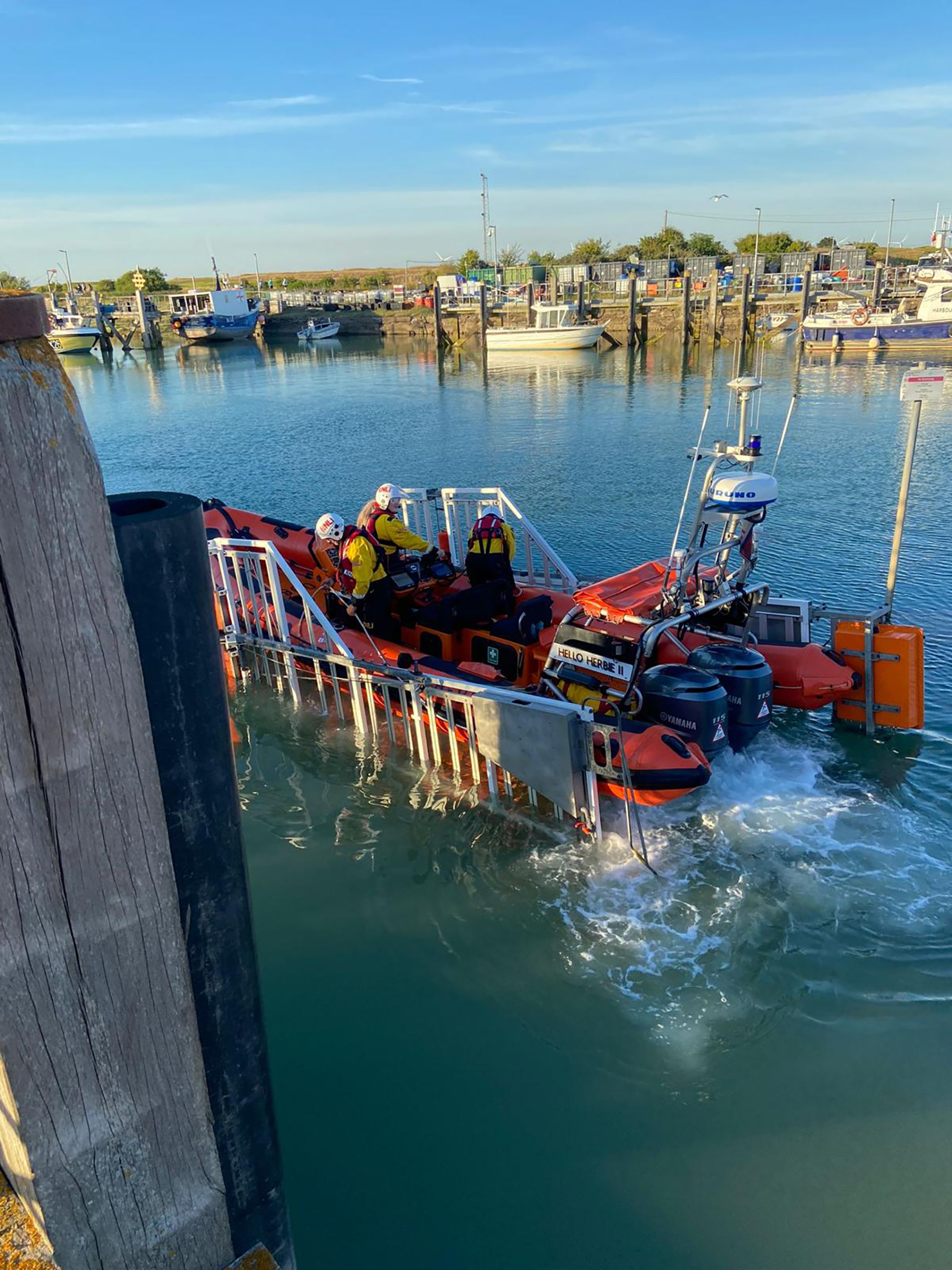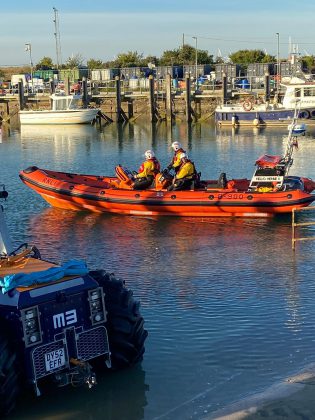 RNLI Rye Harbour’s Atlantic 85 was tasked at 7pm on June 6 by HM Coastguard to assist an eighteen-year-old male who had drifted away from the shore. It was the first helm call-out for Luke Bishop, who only passed out as helm the last evening. Neil Jolly had his first shout as deputy launching authority and it was Dave Rees’s first shout as shore crew.