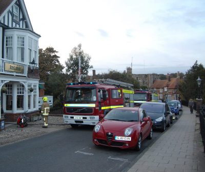The situation was both dangerous and farcical. Prior to the arrival of the bus two teenagers on bicycles and a gentleman with a motorbike used their initiative and blocked access through the Landgate Arch so that vehicles would not become stuck behind the fire engines. Meanwhile, a call to 101 asking for police assistance proved fruitless – after many minutes of listening to recorded messages, including one long one from the Chief Constable, I eventually spoke to an operator. He then put me in yet another queue. Seven or eight minutes later I still hadn’t been able to report the problem and then the double decker bus arrived. At that point, after consultation with bus driver, who did not happen to have his own phone, we decided to call 999.