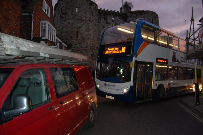 On Thursday afternoon I witnessed a double decker bus become stuck trying to negotiate the turn from Tower Street down into the Landgate. The bus couldn’t get around a van parked on the yellow lines outside the accountants. As a result Cinque Ports Street and Station Approach rapidly became gridlocked.