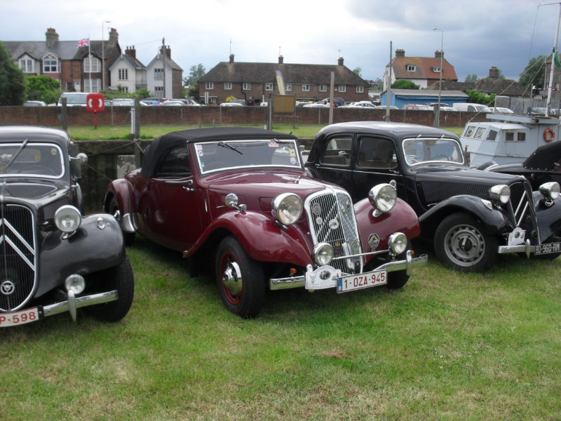 Last Saturday June 18 the roar of high powered motor bikes, so frequently heard at weekends on Strand Quay was replaced by the gentle purr of elderly engines as members of the Traction Owners Club brought their immaculate Citroen cars on to the Quayside as part of the 4oth anniversary celebrations of the Club. Why the strange name? Citroen was one of the first manufacturers to produce front wheel drive cars in any quantity (1934) and the French term for this is ‘traction avant’, usually abbreviated to just ‘traction’.