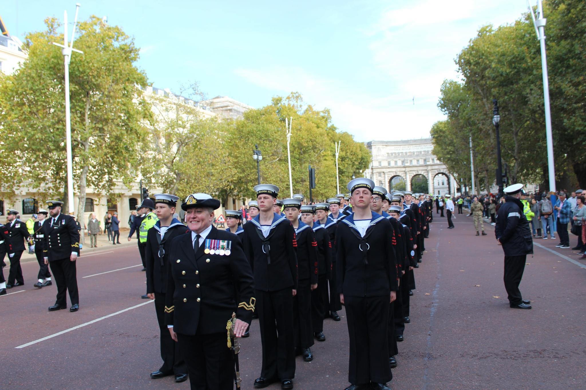 “I have been very proud of the five cadets from Rye who took part in this year’s national Trafalgar Parade. They had all worked incredibly hard on their own personal drill and uniform so they looked their best on the day. They left Rye on Friday morning to travel to Ashford for two days of intensive training. They were joined by cadets from across the country to form a display showing off a variety of skills, including drill, physical training, and the massed band of the corps. The salute for the day was taken by Rear Admiral RN Judith Terry OBE, followed by a march along the Mall past Buckingham Palace to their final destination of Wellington Barracks. This was such an achievement for the five cadets from Rye: they were the first cadets in the unit’s near seventy-year-old history to represent us at such a prestigious parade in the nation’s capital.”