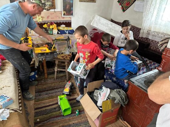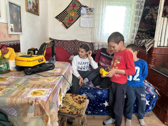Yesterday Malcolm and Barry visited a family with four children. Malcom explained: “Their mother had abandoned them and they live only with their father. Moreover, to add to their problems, their house caught fire some time ago. The Protection of Children organisation wanted to take the children into care as they did not have a home. The brothers from the local church joined hands to look after them and to rebuild their house. Construction is under way, but there is still a long way to go until it is completed. However, today the children enjoyed sweets, toys, clothes and games to lighten their lives. It was such a joy to see them so happy. It makes all the hours of driving so worthwhile when you know you have made a difference. Of course we can’t do this without the wonderful generous support from friends and family back in the UK.”