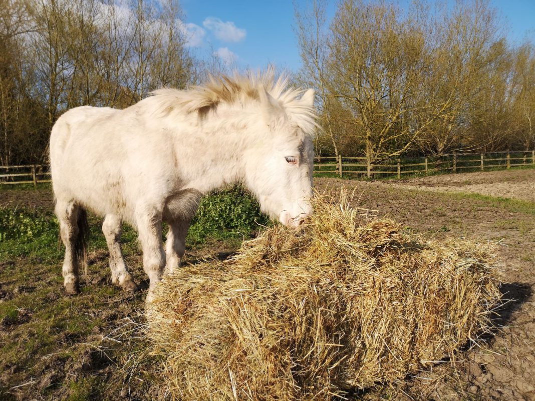 Hay costs about £30 a round bale and Tommy, Donny and friends eat about three per week.  Special feed with supplements for older equines (Donny is 29 years old) costs between £10 to £30.