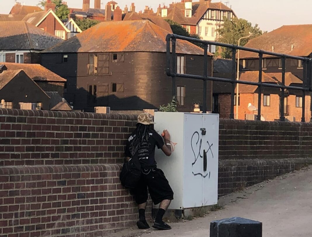 Do you know the man in the photo? He was spotted defacing metal boxes with orange paint along Winchelsea Road in Rye at 8:25pm on Thursday, June 15 with two others. The same orange tag can also be seen in several places around Rye.