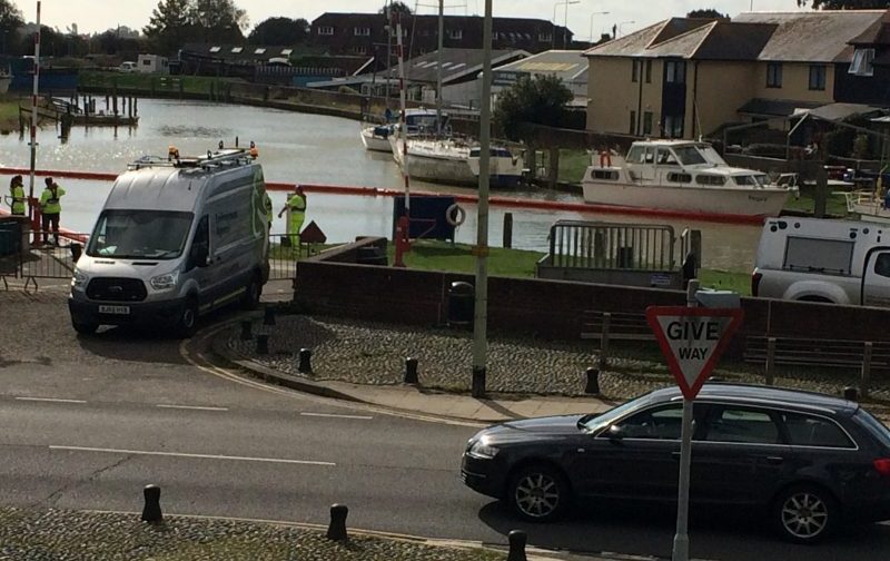 Seen from the editorial window on Monday, October 17: six Environment Agency vehicles, two with trailers, arrive by the slipway at Strand Quay and disgorge their contents of 14 EA staff all with hi-viz jackets and lifejackets. Lifejackets? This appears to be regulation equipment if one is going to be within several yards of water.