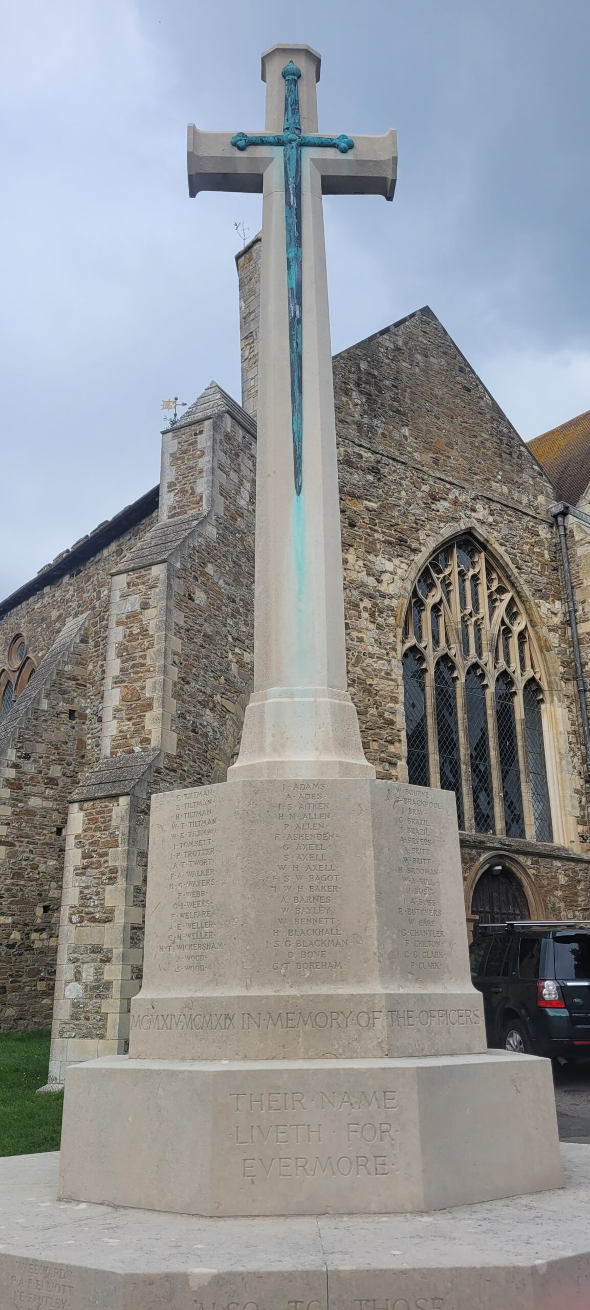 The repair is the initiative of Colonel Anthony Kimber PhD as President of Rye and District Branch of the Royal British Legion (Rye RBL), and acting on behalf of St Mary’s church, Rye Town Council, and Rother District Council. Almost 200 members of the Rye community from both world wars, and the Gulf and Iraq wars, have names recorded on the memorial.