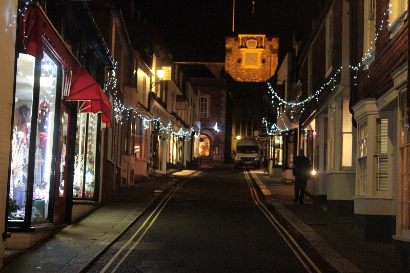 This week we kick off in Lion Street (above), with the lights making a pathway uphill to the Town Hall and St Mary’s Church at the peak of the historic Citadel area.