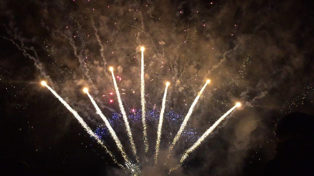 Salvo after salvo of pyrotechnical magnificence delighted a crowd of two or three hundred residents and visitors, who had joined the torch lit procession from the centre of Winchelsea to a new location for the annual display in Castle Field, close by the former site of St Leonard’s Mill.