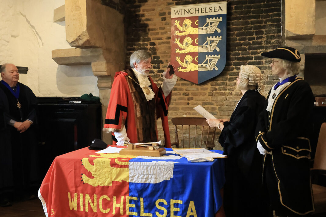Present during the ceremony are the three important officers of the Corporation, the town clerk, chamberlain and sergeant at mace. The latter carry the town’s two silver maces, as a symbol of the mayor’s authority. Both maces are made from silver and are around five hundred years old. 2026 is a special year for Winchelsea, when our mayor becomes the speaker of the Confederation of the Cinque Ports. The office is held by the mayor of each of the head ports and two ancient towns in turn. It passes from one town to the next on 21 May each year, by a process quaintly described as the “septennial revolution”. The speaker acts as chair and principal representative of the Confederation.