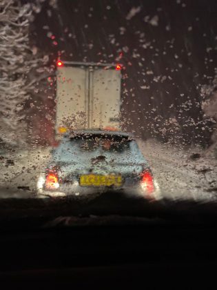 “I’ve driven in the snow a lot over the last forty-five years and never experienced anything quite like this. The best advice, as always, is not to venture out in severe weather conditions, but this snow caught many people out by the speed with which its fall escalated. Hats off to the emergency services, the council plough drivers and to all the Good Samaritans we encountered shovelling snow, clearing ice and helping those who were stuck. A special congratulations to the articulated lorry driver who negotiated his rig down that hill – that was driving skill!”
