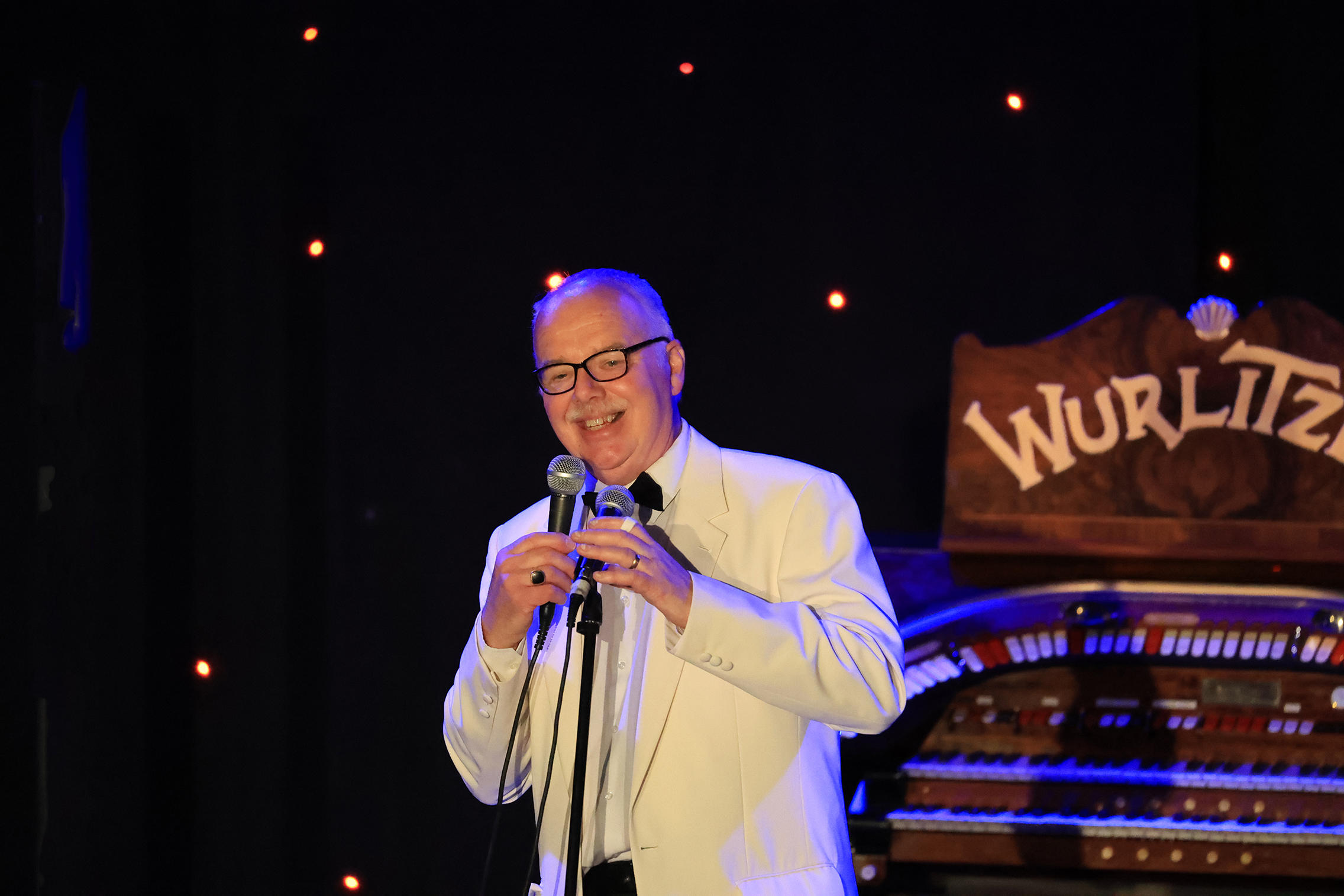 “I’ve lived on the Kent Coast now for sixty-four years and in Lydd for the last twenty-five. I have visited the Wurlitzer Concerts and shows many times. I’ve known their favourite visiting organist John Mann for a long time. Michael Wooldridge is also a good friend, as he’s also the editor of Piers Magazine (Seaside Pier Preservation Society) of which I’ve been a member for many years. I’ve also been in showbusiness all my life… and all of these special variety shows have acts I know very well. Richard Moore is an amazing person, bringing the organ back to life and organising all these wonderful shows and concerts.