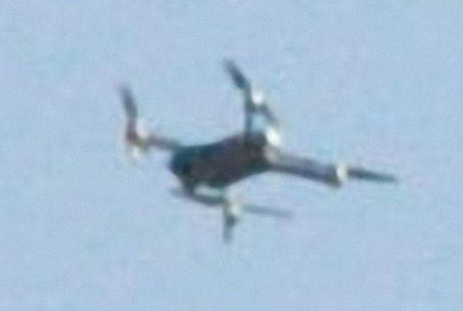 I didn’t think I would have time to get out my super-telephoto lens and so my pictures are not wonderful (on the ordinary image, look for the spot over the chimney) but, drone pirate, I will be ready next time!