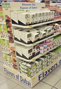 Dubai has a reputation for extravagance and indulgence. On a recent visit, we were introduced to Dubai Chocolate, which has been promoted on social media to the extent that it went “viral” in early 2025. Across Dubai it is hard to avoid it. From the airport to supermarkets to tourist hotspots, the chocolate is everywhere, not only in bar form but as cakes and pastries.