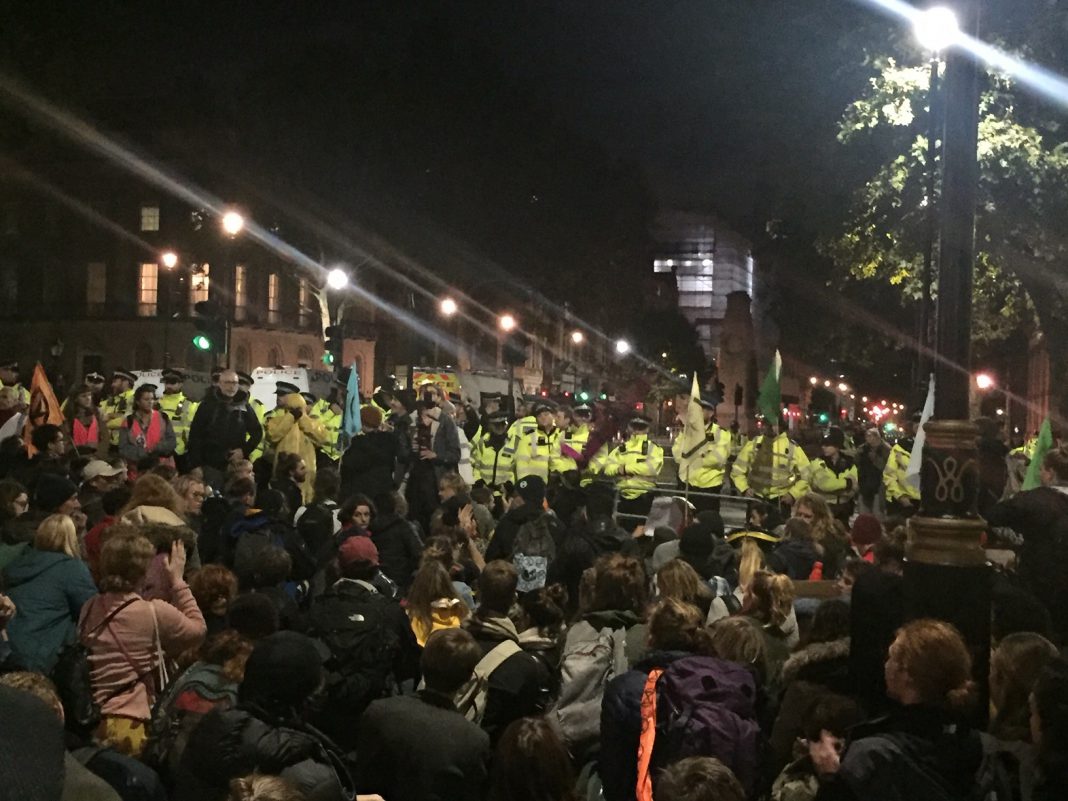 I also acknowledge that as a middle class white person I was privileged to have this respectful relationship – had I been from an ethnic minority almost certainly this would not have been the case. In fact, one of our group witnessed a group of men from an ethnic minority who had nothing to do with XR being singled out for “stop and search”. There are many complaints being made regarding aggressive policing over the fortnight – I was one of the lucky ones.