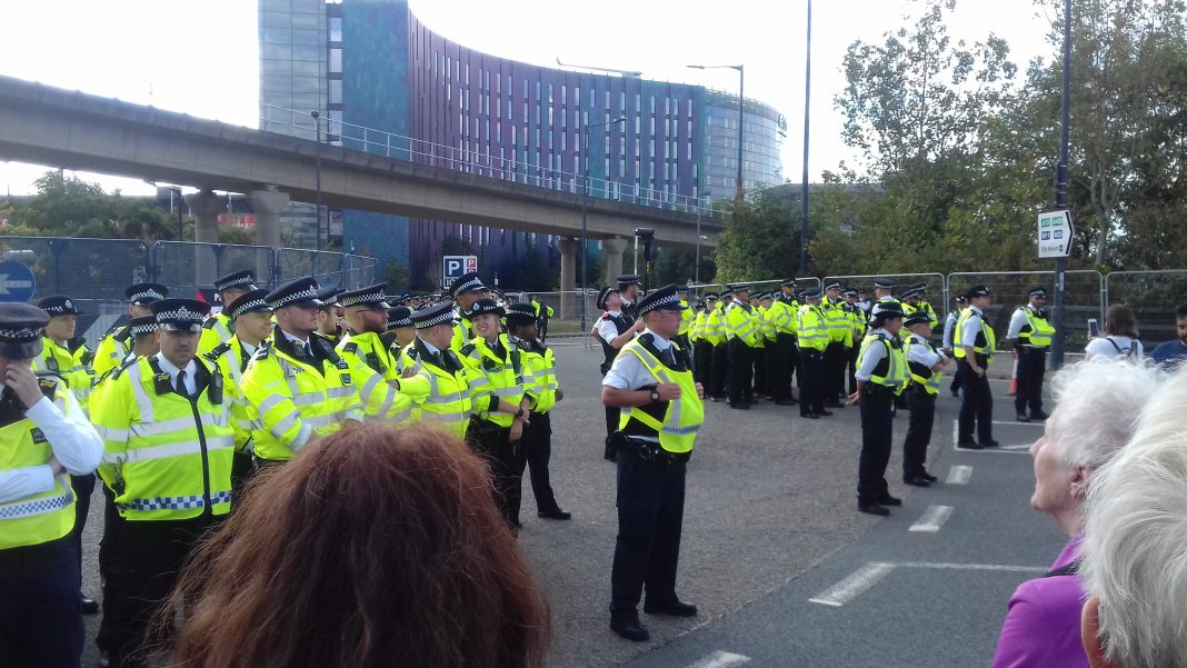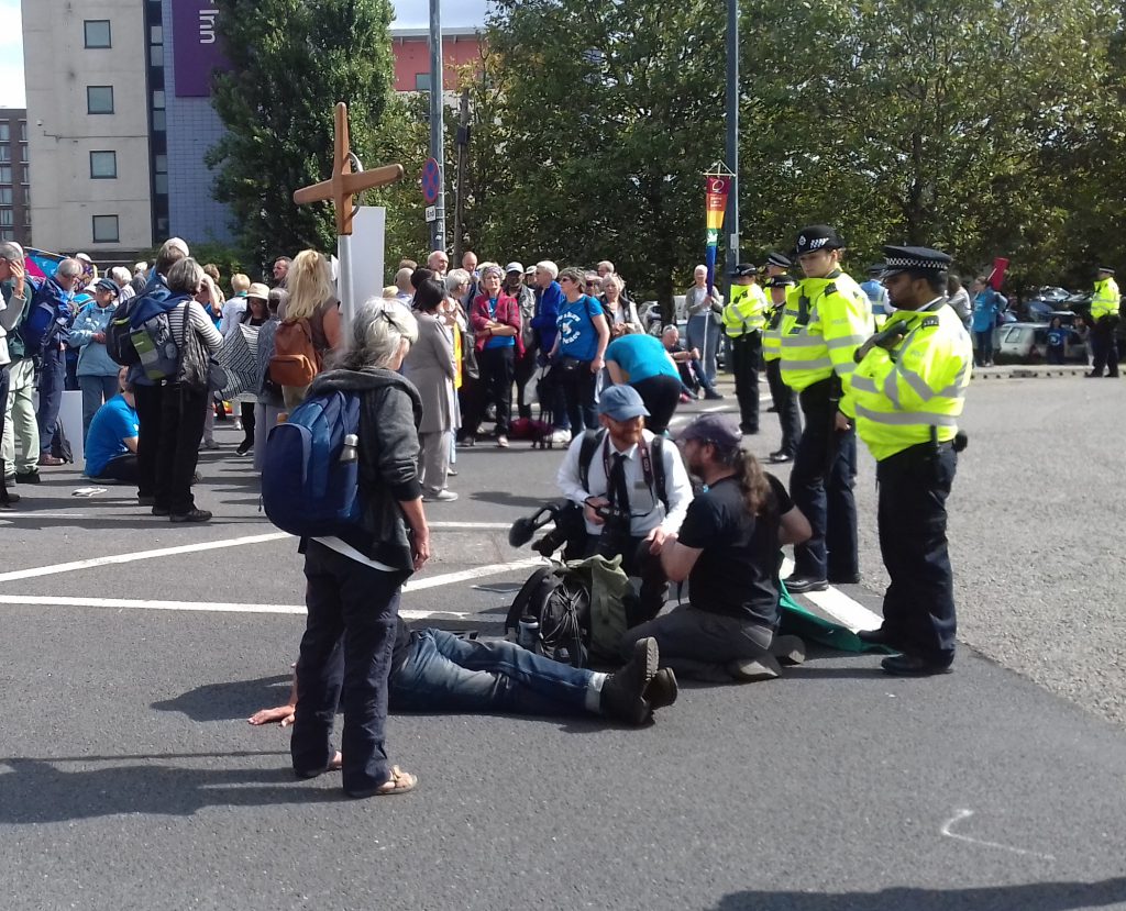 I joined the Quakers and other faith groups on Tuesday, September 3, to demonstrate against the Arms Fair taking place at the Excel Centre in East London. The Fair, otherwise known as the Defence and Security Equipment International – a ridiculous name – let’s be frank, the War Mongering Countries Exhibition – is the biggest arms trade fair in the world.