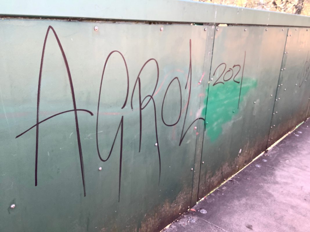 These are ‘tags’ which belong to a particular person, “AGROL 20” I believe? If you know who is doing this, please let me know. I will hand over all details to the police and give a reward.