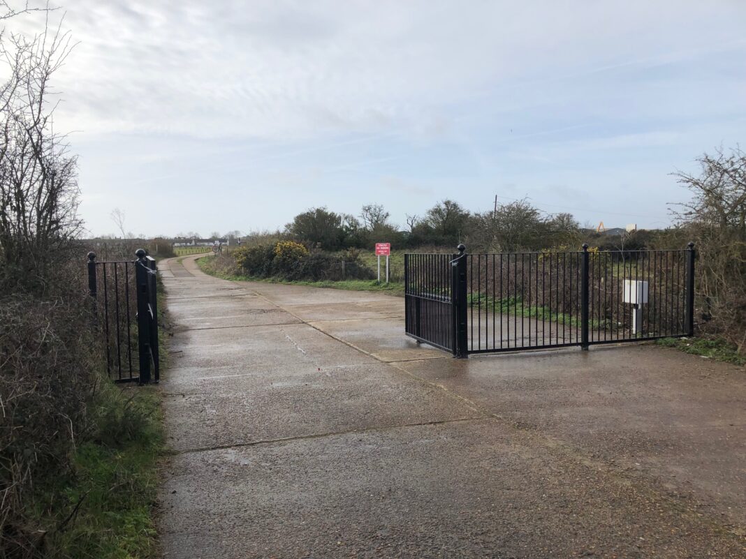 I don’t know if anyone else has noticed the very solid gates, fence and intercom which have appeared at the top of the lane leading down to the old Tram Shed which used to service trams going from Camber to Rye.