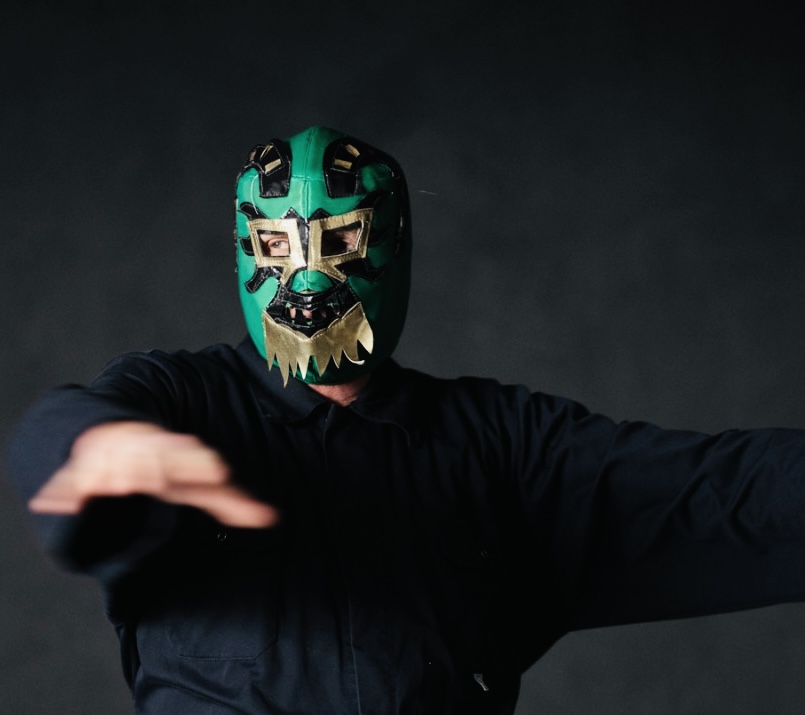 Jesus describes himself as “a Mexican wrestler that doesn’t wrestle”. It’s more a way of life. Most days he wears a Mexican wrestler’s mask and and workman’s overalls. He advocates a pared back simple existence. His work reflects his philosophy and approach to living. Far less is far more.