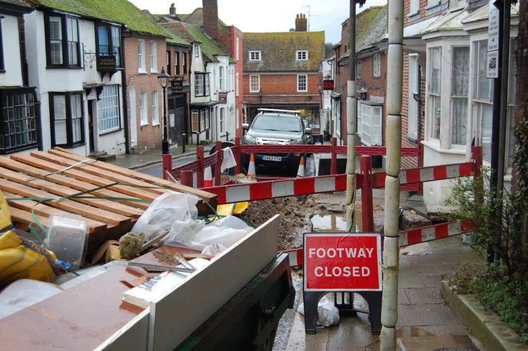 A UK Power Networks team quickly assembled and started investigating at the electricity substation on Conduit Hill. Their efforts were reportedly hampered by the presence of a parked car, according to one concerned resident who had contacted the emergency services for information, “and I actually spoke to a real person”, said Jane who lives in East Street. The work of locating the fault then switched to East Street, and the cable damage was soon located under the pavement near Chequer, the scene of ongoing building work.