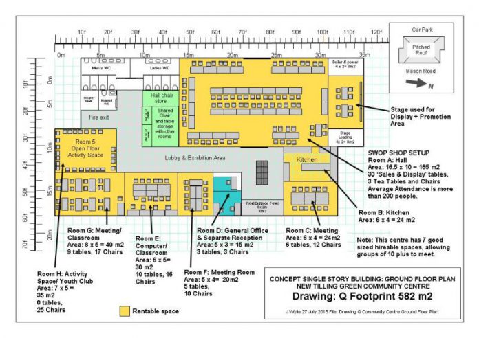 The planning criteria states that the new centre must be designed to be self supporting. Unfortunately, the new small centre’s design is like ‘If you have a little shop, with little to sell; you are not going to do much business’. Therefore, to make the centre marketable, it will need its amenities piled high and rented cheap to attract clubs and other low budget non profit making voluntary groups, because the centre’s income will be generated through renting out its amenities.
