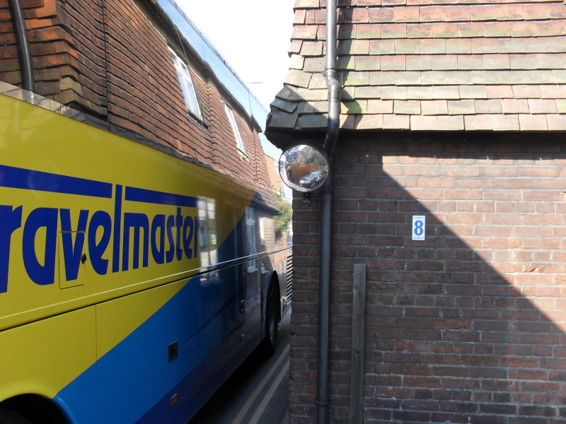 The pavement opposite our house is approximately three feet wide and it is only just possible for two people to walk side by side. Our neighbour had her rib broken when the wing mirror of a large lorry caught her as she was walking along the pavement.